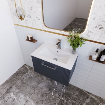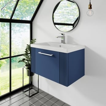 Nuie Deco Wall Hung 1-Drawer Vanity Unit with Basin-2 600mm Wide - Satin Blue