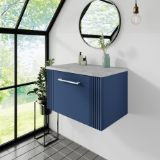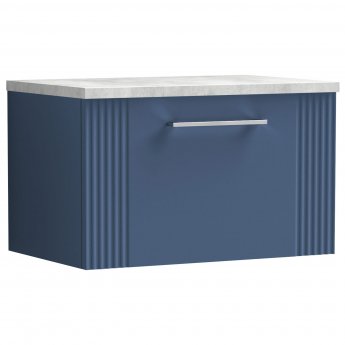 Nuie Deco 600mm 1-Drawer Wall Hung Vanity Unit with Countertop - Satin Blue - Bellato Grey