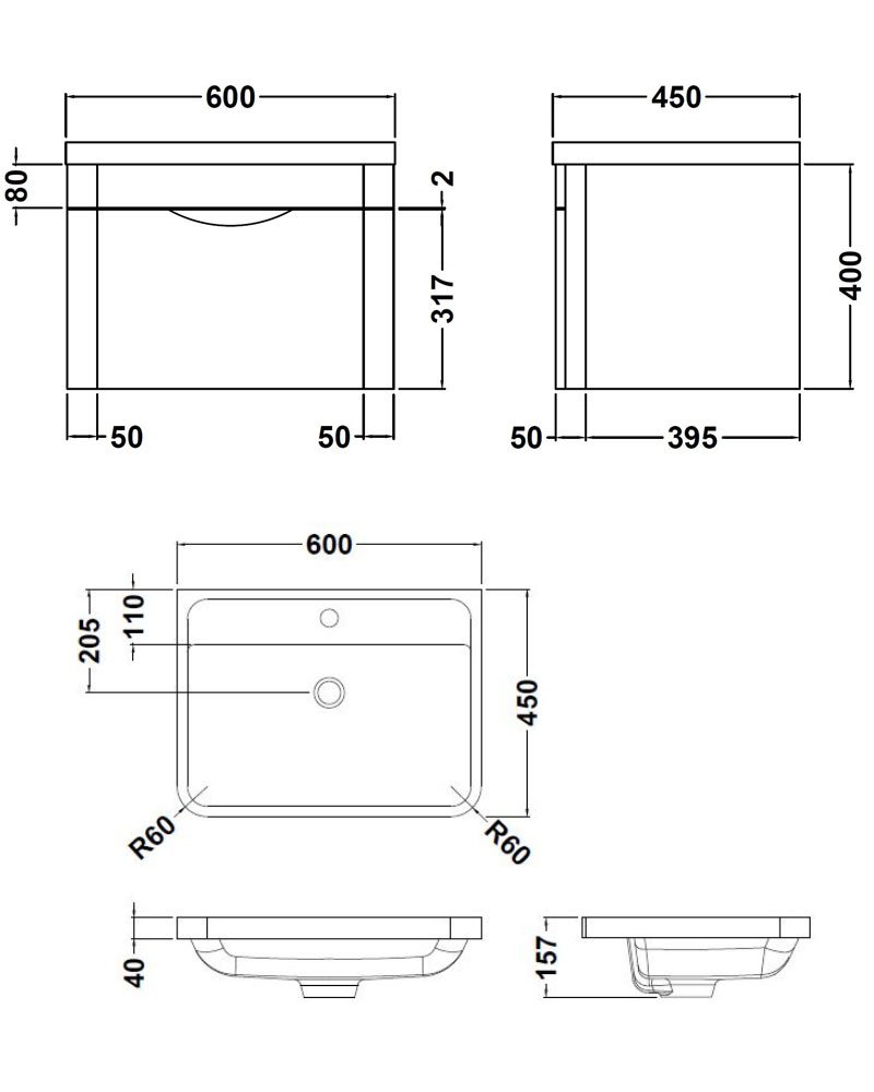 Furniture Width (Unit + Basin)600mm
