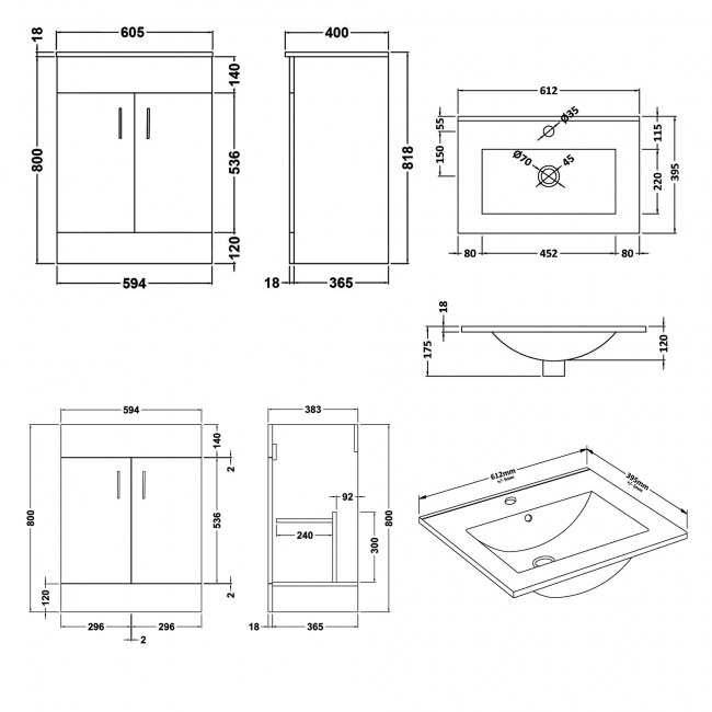 Total Width (Unit + Basin)612mm