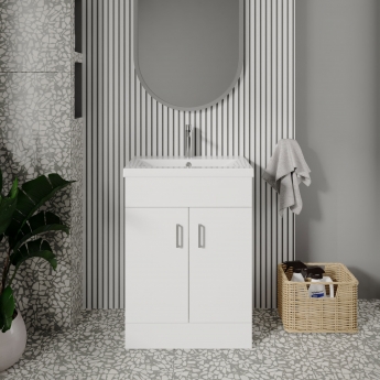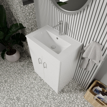Nuie Eden Floor Standing 2-Door Vanity Unit with Basin-2 600mm Wide - Gloss White