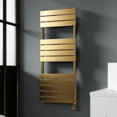 Nuie Flat Panel Brushed Brass Electric Towel Rail