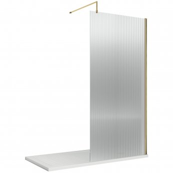 Nuie Fluted Brushed Brass 1850mm Wet Room Glass Shower Screen