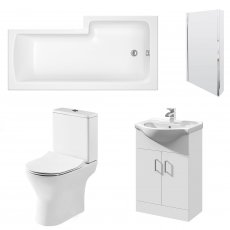 Nuie Freya Complete Furniture Suite with Vanity Unit and L-Shaped Shower Bath 1700mm LH