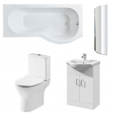 Nuie Freya Complete Furniture Suite with Vanity Unit and P-Shaped Shower Bath 1700mm RH