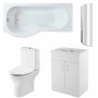 Nuie Freya Complete Furniture Suite with 600mm Vanity Unit and P-Shaped Shower Bath 1700mm LH