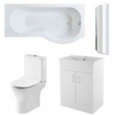 Nuie Freya Complete Furniture Suite with 600mm Vanity Unit and P-Shaped Shower Bath 1700mm RH