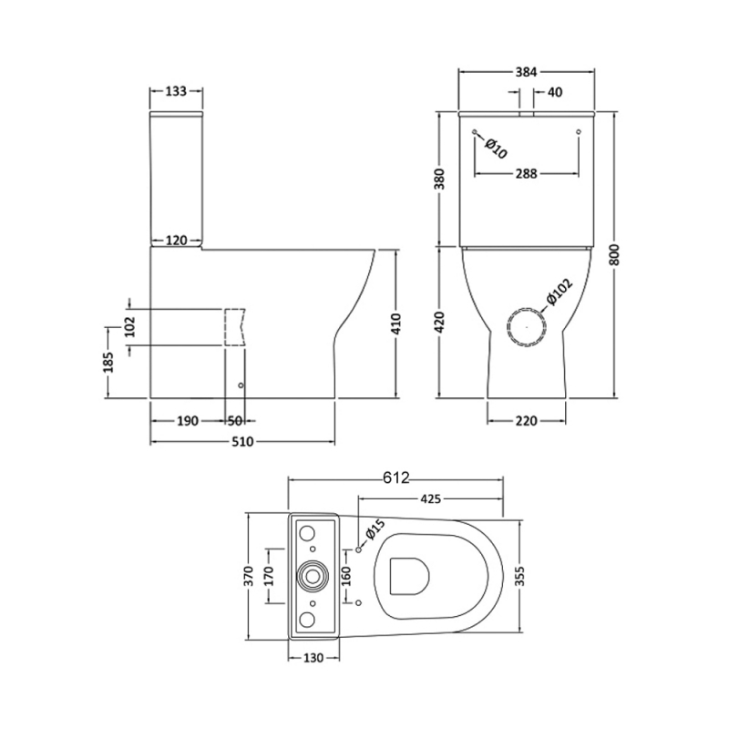Modern and sleek; this Nuie Freya Rimless Flush to Wall Close Coupled Toilet is a great addition to any bathroom space. It features bold lines which create a clean and neat design, which gives you the appearance of plenty of space.