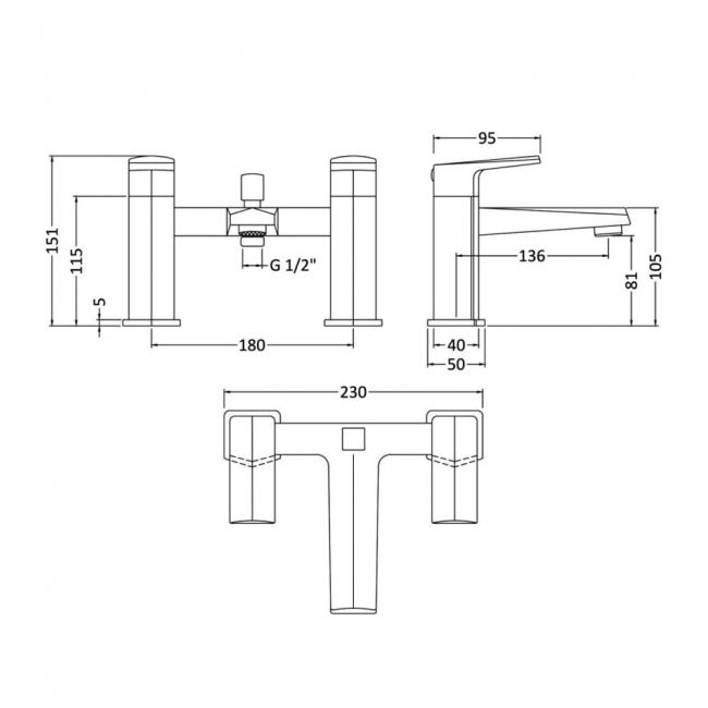 Nuie Hardy Bath Shower Mixer Tap Pillar Mounted - Chrome