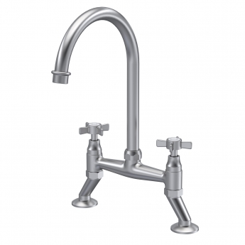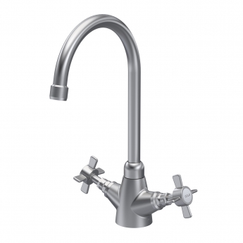Nuie French Classic Kitchen Sink Mixer Tap Swivel Spout Dual Handle - Brushed Brass