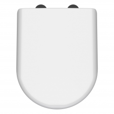 Nuie Luxury D-Shaped Toilet Seat with Soft Close Quick Release Hinges Black Cover Cap 364mm Wide - White