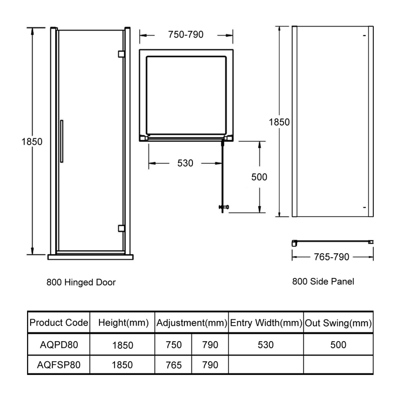 Shower Door Width700mm, 760mm, 800mm, 900mm