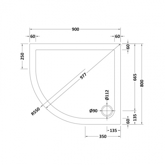 - Standard 550mm curve radius - suitable for all standard offset quadrant shower enclosures