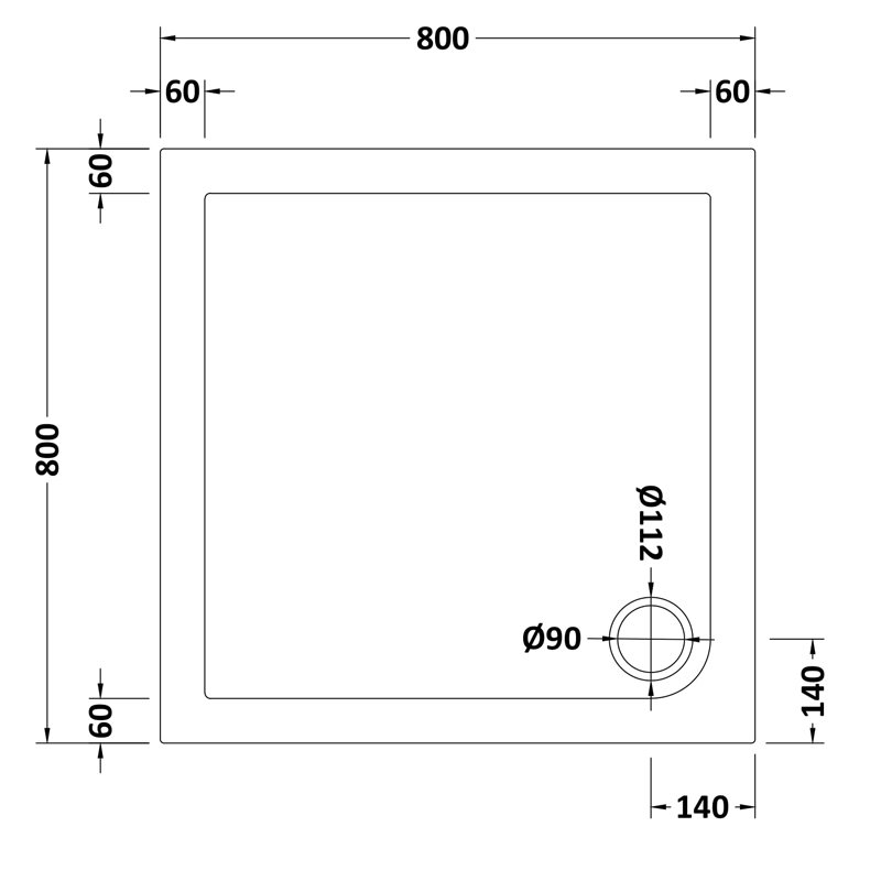 - Square shower tray measuring 800mm x 800mm