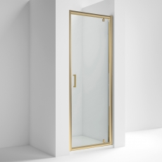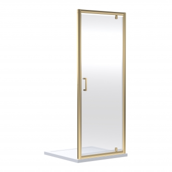 Rene Brushed Brass Pivot Shower Door - 6mm Glass