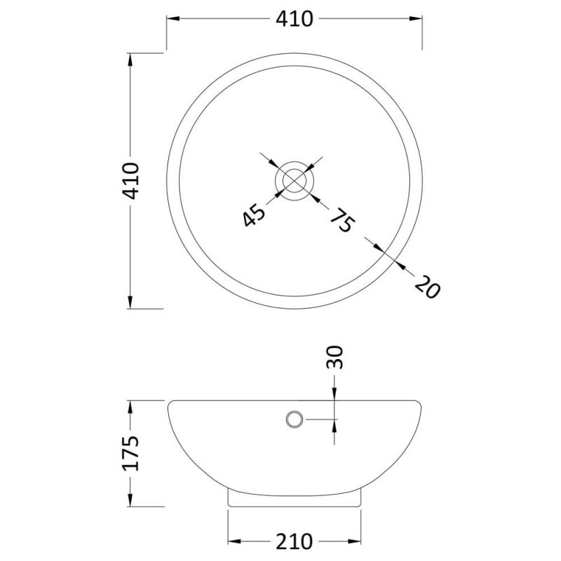 - Round basin suitable for mounting on furniture