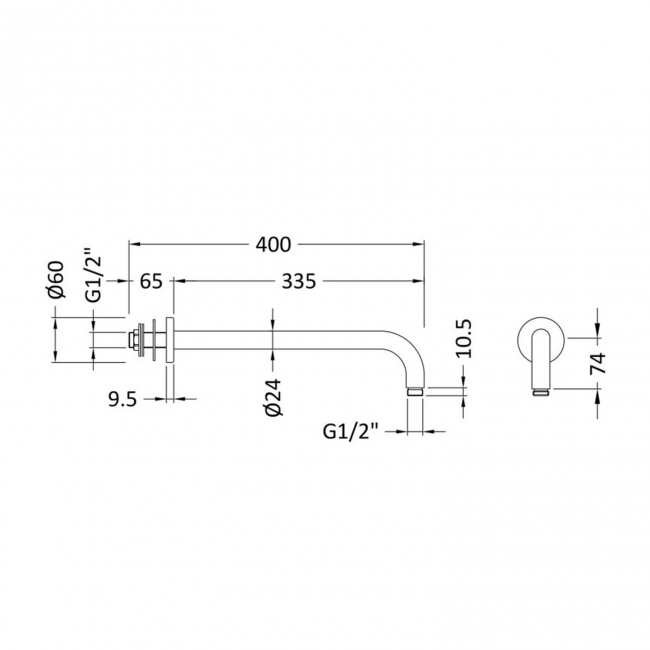 Nuie Arvan Round Wall Mounted Shower Arm 335mm Length - Matt Black