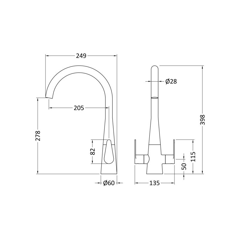 Nuie Samir Mono Kitchen Sink Mixer Tap Dual Lever Handle - Matt Black