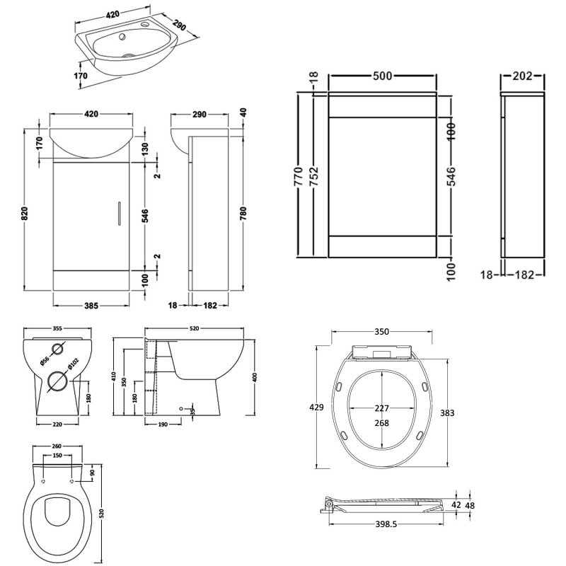 - Complete cloakroom solution including vanity unit and back to wall toilet