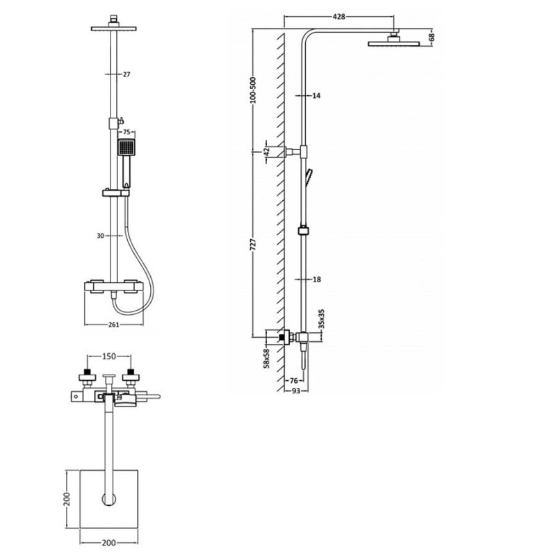 - Comes with Rigid riser kit, fixed shower head and matching handset