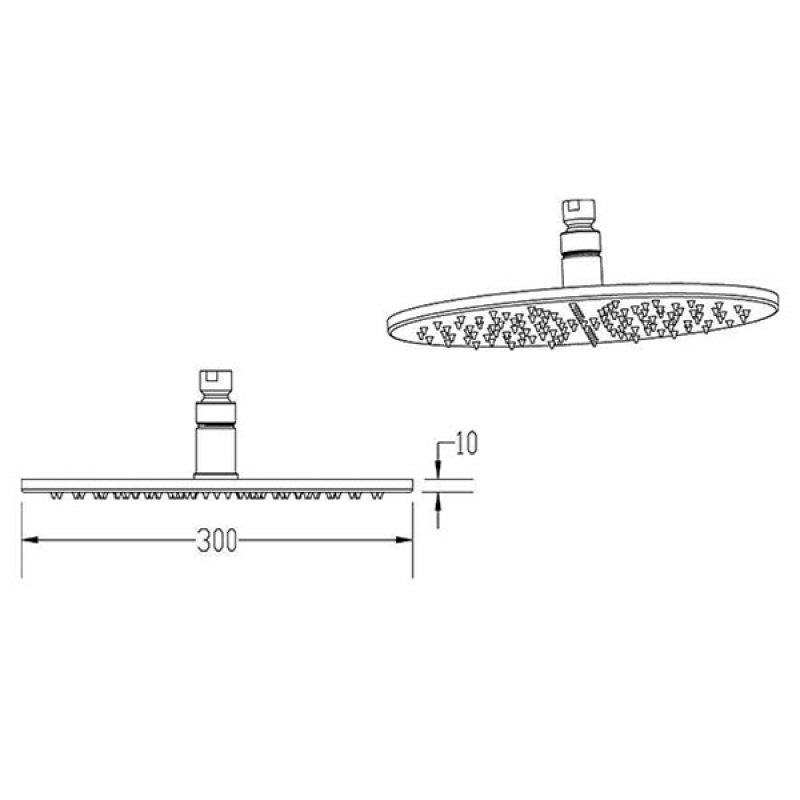 - Contemporary fixed shower head with standard 1/2 inch connection