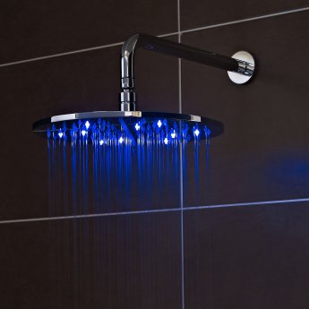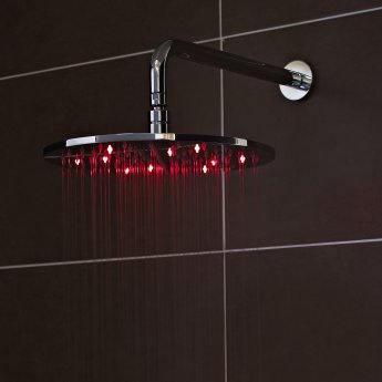 The Nuie LED Round Fixed Shower Head, 300mm Diameter, Chrome is an exciting and innovative new addition to the range of shower heads. Featuring LED lights that gently cycle through a range of colours, you can make your shower come alive, without the need for batteries. Supplied with a 5 year guarantee from the manufacturer (12 months on moving parts), please see manufacturer guarantee policy for more information.