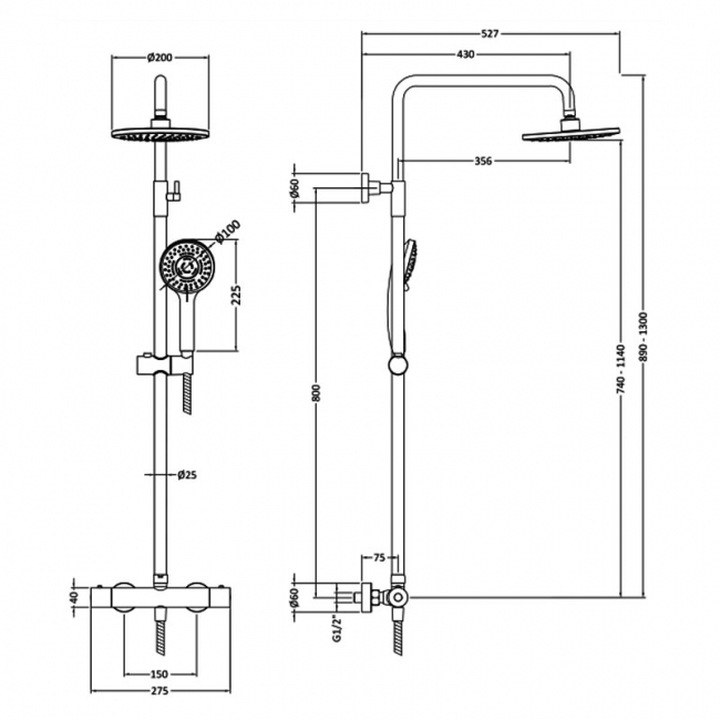 - Comes with Rigid riser kit, fixed shower head and matching handset