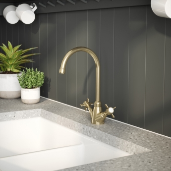 Bring some traditional style and elegance to your kitchen with the Nuie Traditional Mono Kitchen Sink Mixer Tap with Dual Handle in Brushed Brass. This tap is designed to not only look great, but to be a functional addition to your kitchen too. Bringing you the best of both worlds in one package.