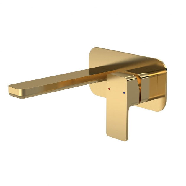 Nuie Windon 2-Hole Wall Mounted Basin Mixer Tap with Plate - Brushed Brass