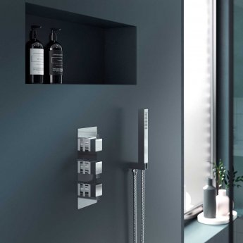 If you're looking for the perfect shower to bring your bathroom bang up to date, then this concealed unit from Nuie Volt could be the perfect choice. The styling of this shower is all about modern lines, shiny chrome and square edges, and it will make a real statement in any bathroom or wet room. The rainfall style head is attractive and functional, and there is a separate diverter handset to make showering far easier.