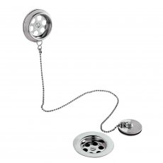 Nuie Retainer Bath Waste with Overflow Brass Plug and Ball Chain - Chrome