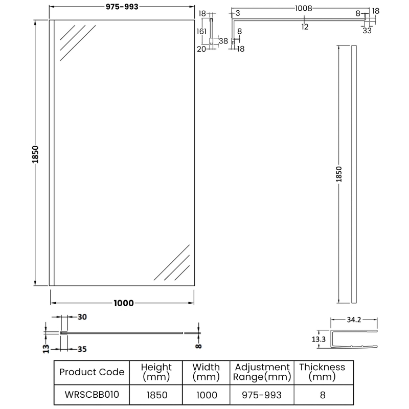 • Can be combined with a return panel or further glass panels for bespoke wet room