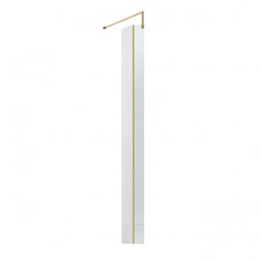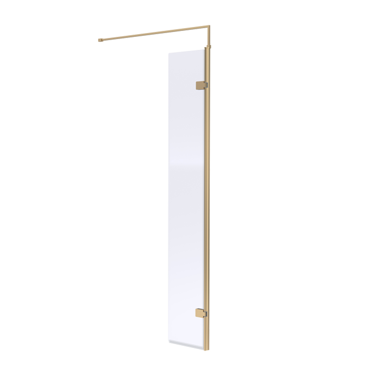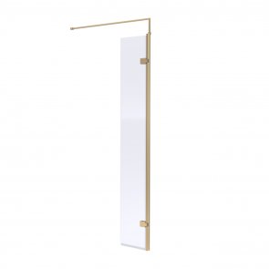 Nuie Wet Room Hinged Return Panel 1850mm High x 300mm Wide 8mm Glass - Brushed Brass