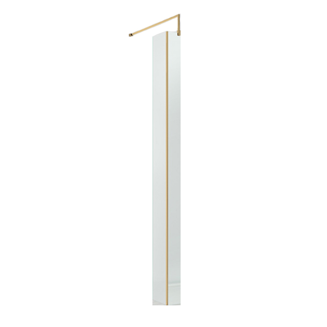 Nuie Wet Room Fixed Return Panel 1850mm High x 215mm Wide 8mm Glass - Brushed Brass