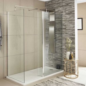 - Can be combined with a return panel or further glass panels for bespoke wet room