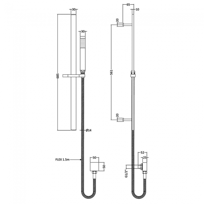 Shower Kit IncludesShower Handset, Shower Hose, Sliding Rail
