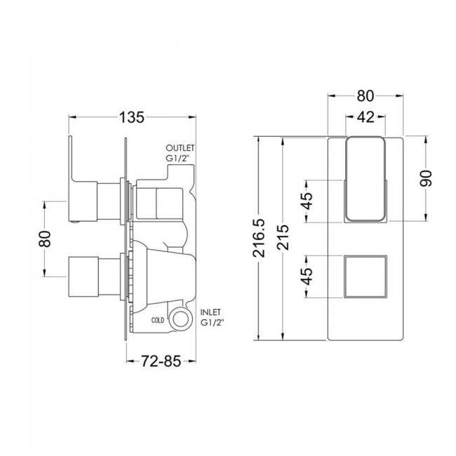 Nuie Windon Thermostatic Concealed Shower Valve Dual Handle - Matt Black