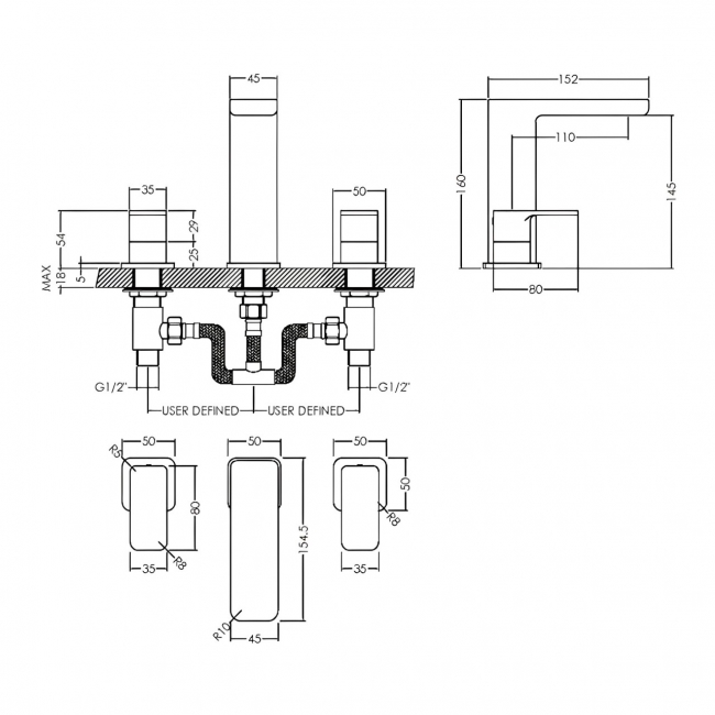 Nuie Windon 3-Hole Basin Mixer Tap with Pop-Up Waste - Chrome | Product Image Nuie Windon 3-Hole Basin Mixer Tap with Pop-Up Waste - Chrome