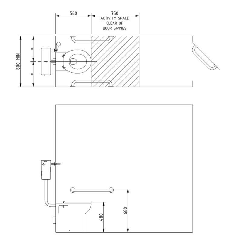 • 2 x 600mm coated steel grab rails with concealed fixings