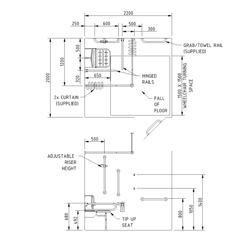 • 1 x 450mm stainless steel grab rail with concealed fixings