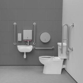 Nymas NymaCARE Rimless Close Coupled Doc M Toilet Pack with Stainless Steel Grab Rails - Satin