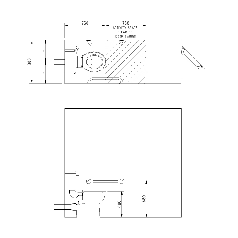 • 2 x 600mm coated steel grab rails with exposed fixings
