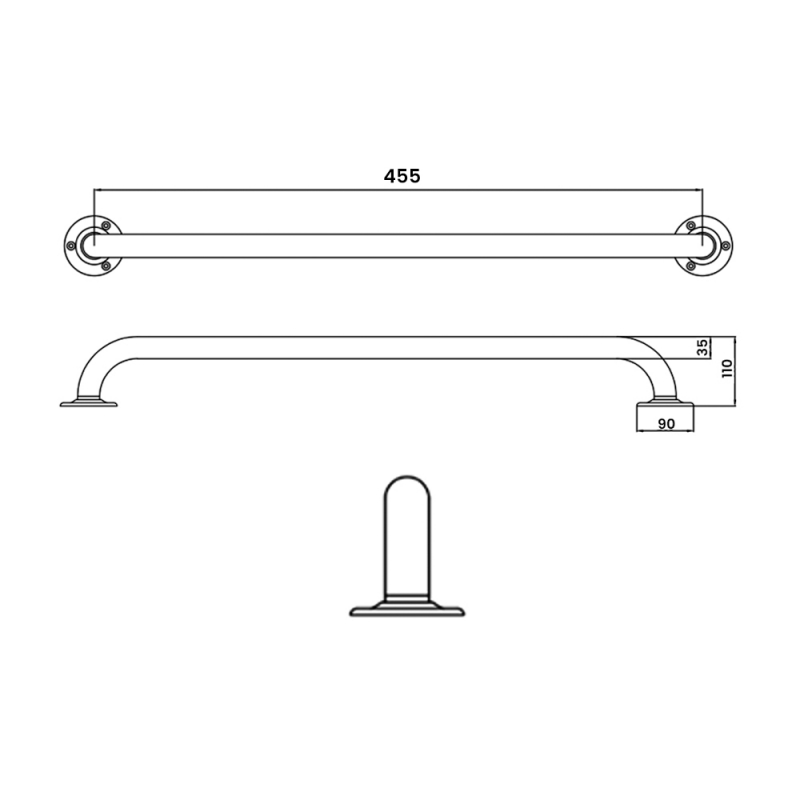 Nymas NymaPRO Round Flange Robust Steel Grab Rail 35mm Diameter 455mm Length - White | Product Image Nymas NymaPRO Round Flange Robust Steel Grab Rail 35mm Diameter 455mm Length - White