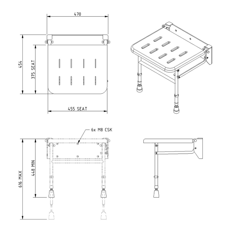 Nymas NymaPRO Wall Mounted Padded Shower Seat with Legs - Grey | Product Image Nymas NymaPRO Wall Mounted Padded Shower Seat with Legs - Grey