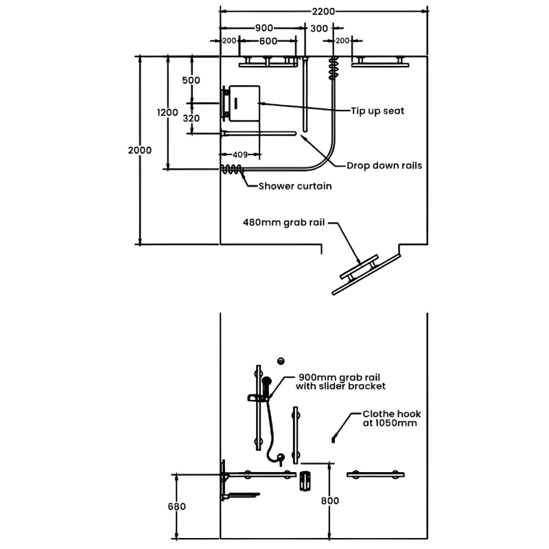 • 1 x 900mm stainless steel grab rail with concealed fixings
