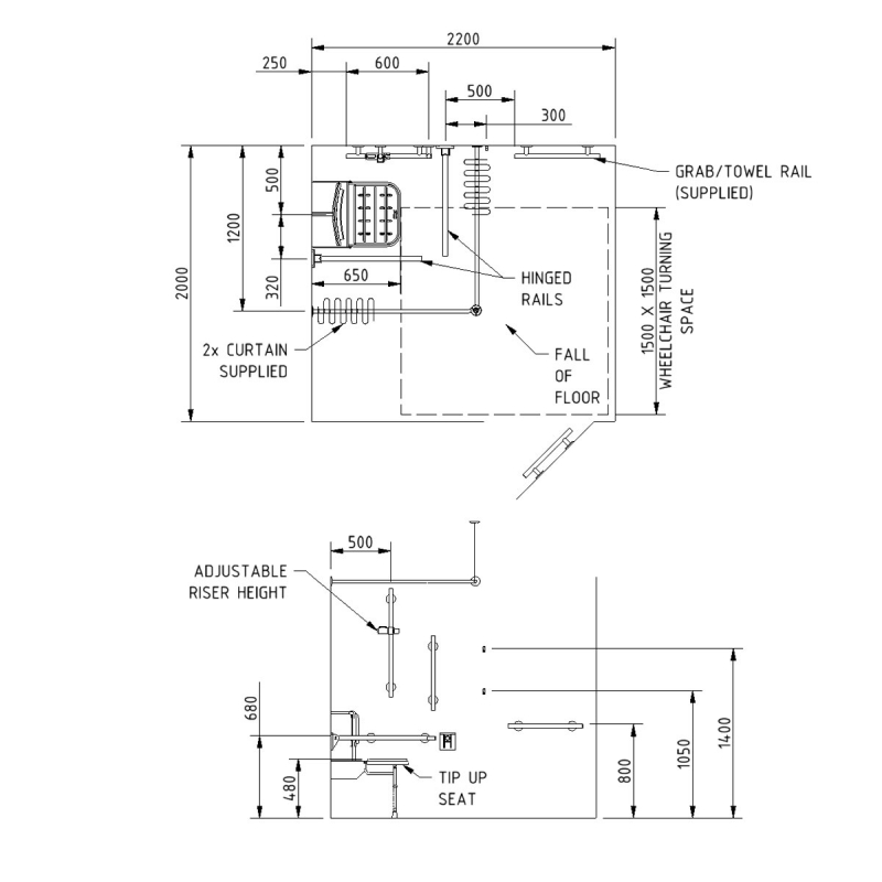 • 3 x 600mm stainless steel luxury grab rails with concealed fixings