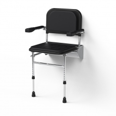 Nymas NymaSTYLE Premium Wall Mounted Padded Shower Seat with Legs Back and Arms - Black | Product Image Nymas NymaSTYLE Premium Wall Mounted Padded Shower Seat with Legs Back and Arms - Black