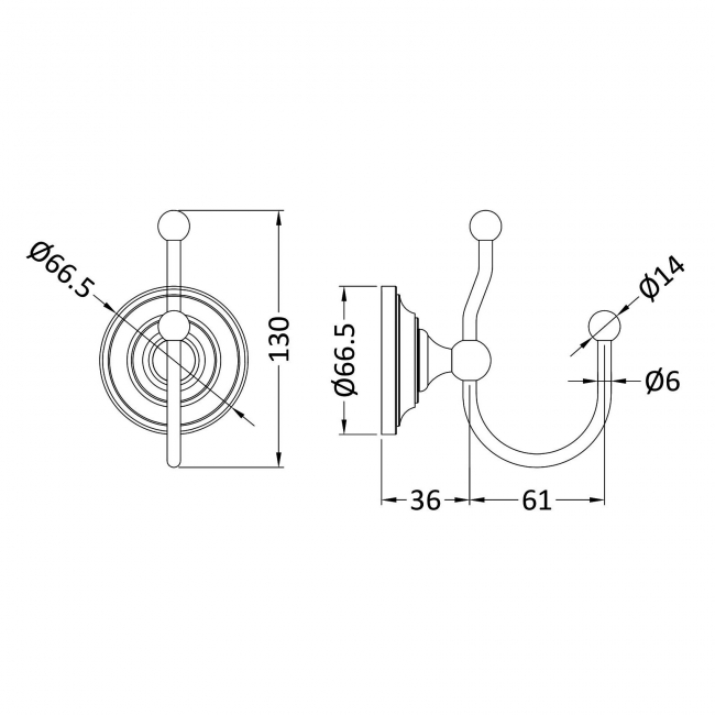 Hudson Reed Traditional Double Robe Hook - Chrome | Product Image Hudson Reed Traditional Double Robe Hook - Chrome
