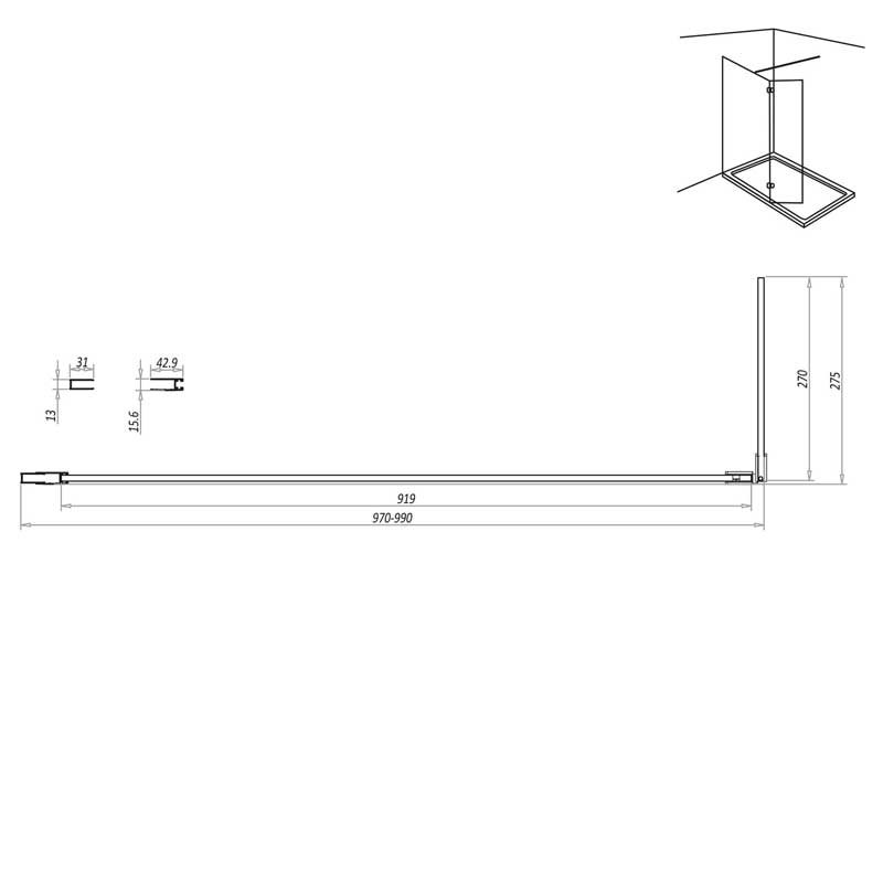 Orbit S8 Wet Room Glass with Deflector Panel (1000mm + 275mm) Wide - 8mm Glass