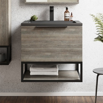 Orbit Linea Curve 1-Drawer Wall Hung Vanity Unit with Basin 600mm Wide - Matte Black